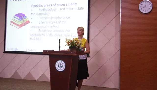 Edith Szivas博士详细介绍了从用人单位、学生培养、培养方案、师资队伍、行政管理等方面提升教育质量的方法,并解释了UNWTO.TedQual质量认证的指导思想、标准、工作程序、申请方法与步骤。