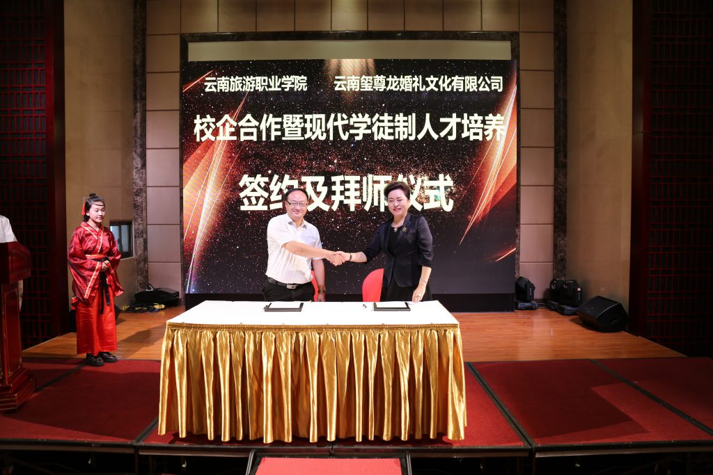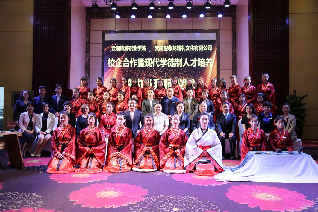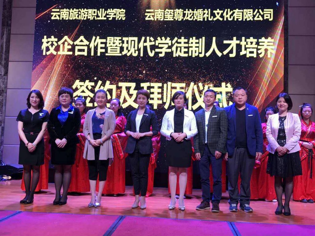 bevictor伟德国际1946官网婚庆服务与管理专业是在云南省婚庆行业协会的支持下,于2016年首次在西南地区开办的。经过不断的积极探索,联合云南玺尊龙婚礼文化有限公司共同开展了婚庆专业现代学徒制培养试点工作。本次校企联合推进婚庆专业现代学徒制人才培养,不仅有利于双方资源共享、优势互补、互利共赢,还能加强学生实践能力和职业技能的培养,为我省婚庆行业持续提供优质的人才资源。