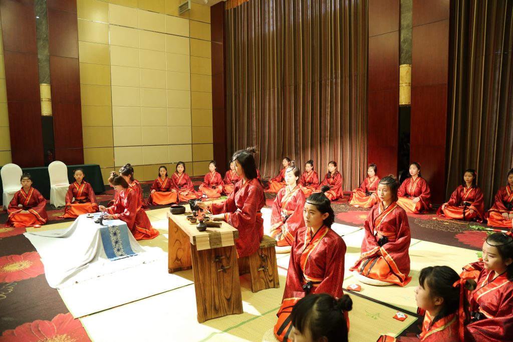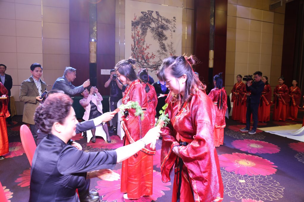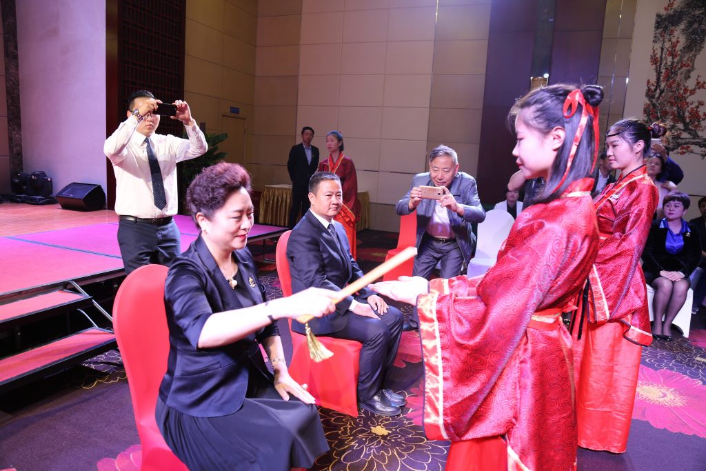 随后,姜亚碧会长、吴峰总经理等6位导师代表,接受了“玺尊龙订单班”同学的拜师礼、束脩礼、释菜礼、惩罚礼、奉茶礼,完成了拜师仪式。
