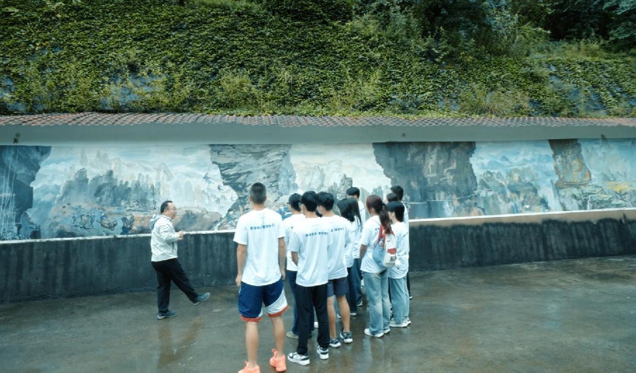 基地外部有一幅壮丽的壁画,展现的是先辈们在悬崖峭壁上用简陋的工具不惧险阻开凿出水堰的情景。