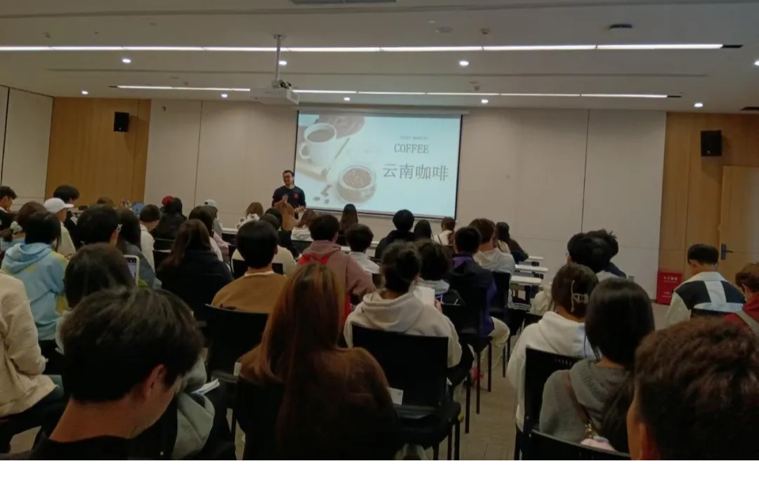 随后,师生前往园区四楼参加专题讲座,学习“云上咖香”品牌的发展经验。通过深入了解该品牌利用数字化技术构建全国高校服务网络的实践,同学们对产学研一体化基地建设和咖啡文化推广有了更直观的认识。