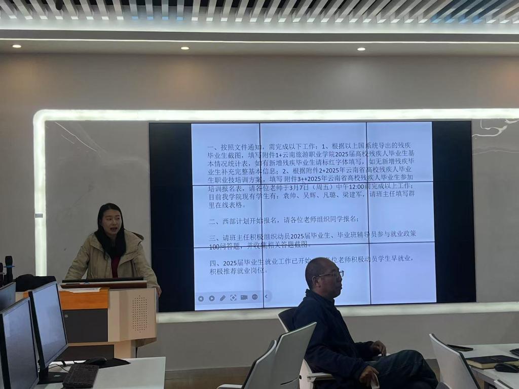 为深入贯彻落实习近平总书记关于就业工作的重要讲话精神和《中共中央国务院关于实施就业优先战略促进高质量充分就业的意见》的工作要求,积极推动2025届毕业生就业工作,2025年3月6日,经济管理学院在图书馆310教室举行了2025届毕业生就业工作启动会议。经管学院党支部书记张小军、院长赵云栋、副书记刘莲菲,以及就业工作辅导员、班主任及全体教师参加了此次会议。