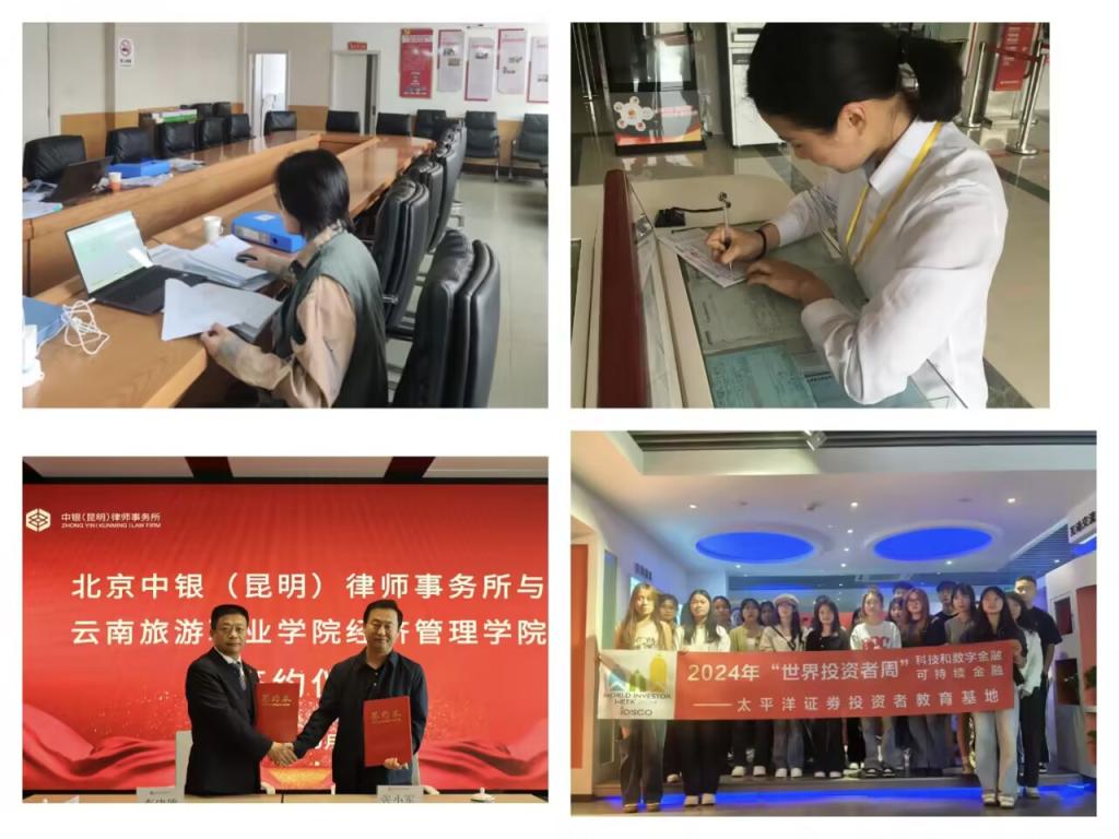 学院始终致力于为学生提供高质量的实践教学环境,高度重视实习管理工作,不断完善实习机制,加强与实习单位的合作,力求让学生在实习过程中获得真实有效的职业体验。目前,本专业与云南华岭会计师事务所、拉萨恒信财税咨询有限公司、云南爱尔信教育科技股份有限公司、厦门网中网软件有限公司、太平洋证券有限公司等多家企业合作共建校外实训基地,与多家企业建立了稳定的实习合作关系,较好地满足了学生技能训练、岗位实习和就业的需要。