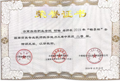 本专业学生在云南省技能大赛市场营销赛项上连续三年获奖;2019年“畅享杯”全国商贸类专业教师教学能力大赛二等奖;“学创杯”大学生创业综合模拟大赛获一等奖、二等奖;“约创杯”教师争霸赛三等奖等多个奖项,专业在全省具有一定知名度和美誉度。