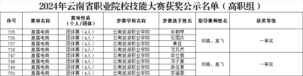 本专业学生2024年参加云南省职业院校技能大赛直播电商赛项,首年参赛的两支队伍均取得了省级一等奖的佳绩,且一支队伍荣获省赛第一名,被选送参加该项目国赛。