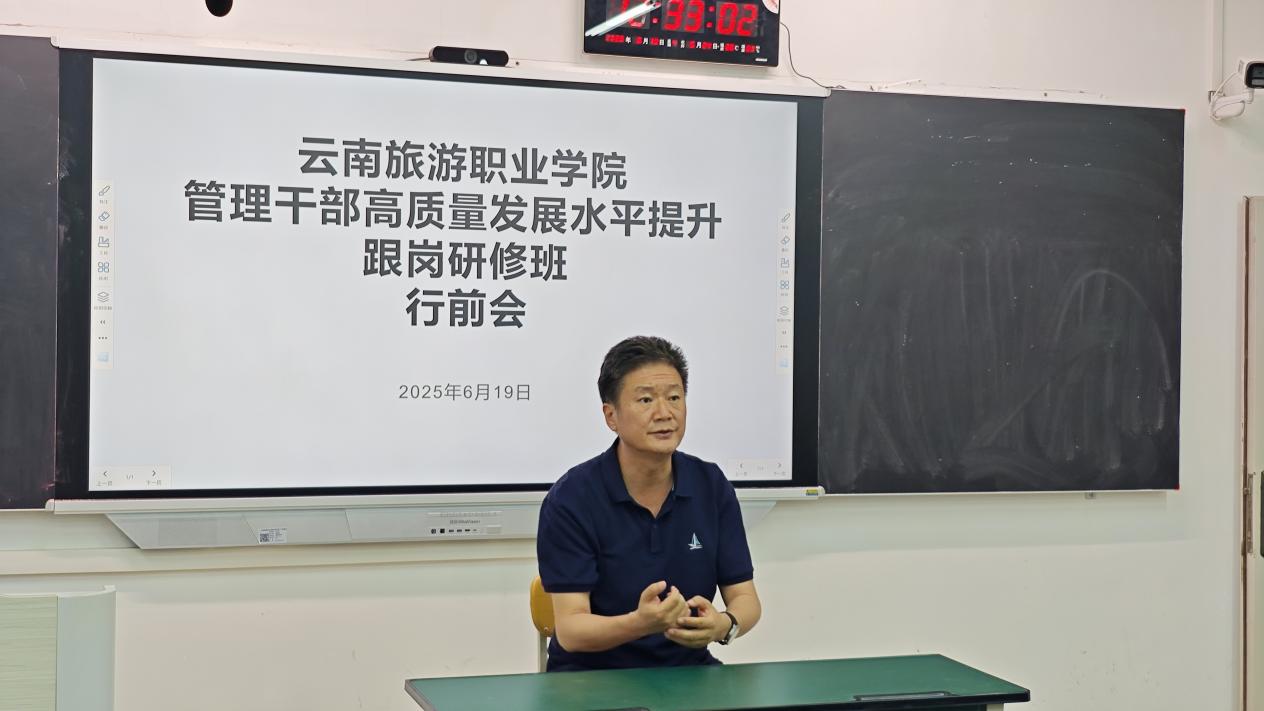 党委副书记、院长蔡冰在行前动员会上指出,当前学院改革发展已经进入到了关键期和攻坚期,组织开展此次研修学习对进一步提高学院管理效能、补足干部能力短板具有重要意义,他希望全体参学人员要带着居安思危的意识去观察学习、交流感悟,收获真正对学院发展有价值的内容,为学院改革发展注入强大动能。同时,对如何达到预期学习效果他提出三点要求:一是要带着问题去学习,秉持问题导向,确保学有所思。二是看体系看实操,学习过程中既要关注整体管理体系架构,又要深入了解具体操作方法。三是要找差距出实招见成效,善于将所学与自身工作进行对比,制定切实可行的举措,并确保取得学习实实在在的成效。
