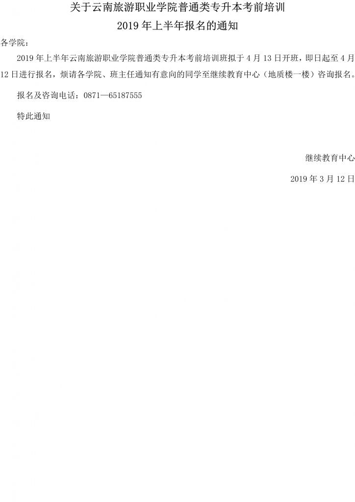 关于bevictor伟德国际1946官网普通类专升本考前培训2019年上半年报名的通知