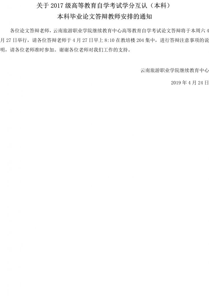 关于2017级高等教育自学考试学分互认(本科)本科毕业论文答辩教师安排的通知