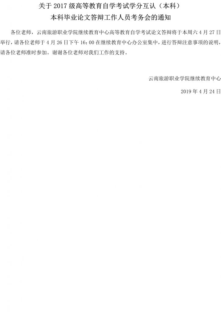 关于2017级高等教育自学考试学分互认(本科)本科毕业论文答辩工作人员考务会的通知
