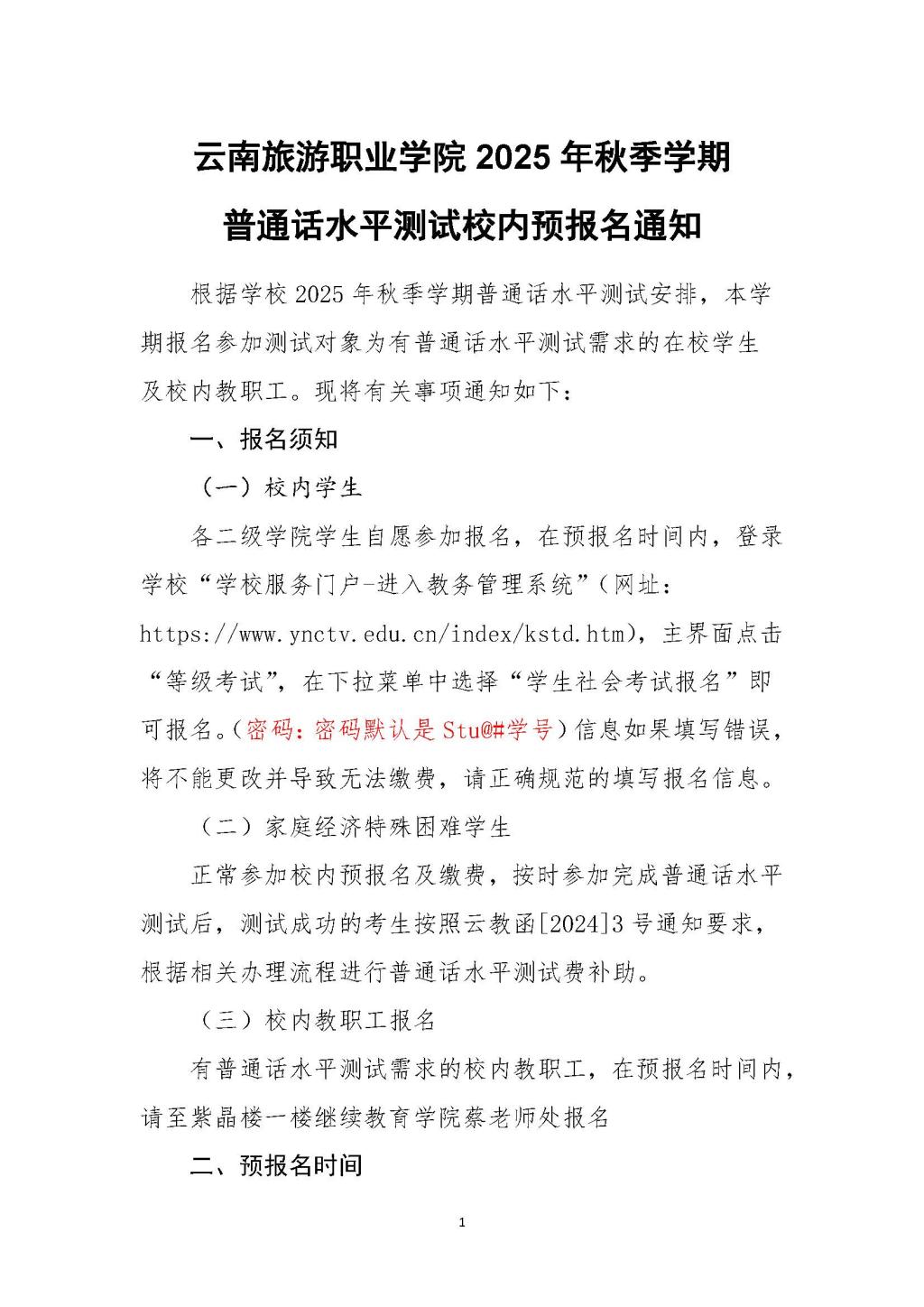 关于开展2025年秋季学期普通话水平测试校内预报名的通知