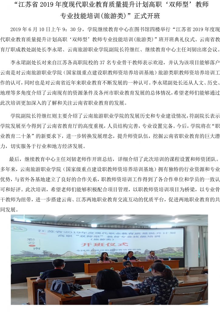 “江苏省2019年度现代职业教育质量提升计划高职‘双师型’教师专业技能培训(旅游类)”正式开班