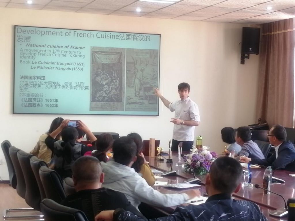 项目实施前期,继续教育学院与烹饪学院一起进行了认真的分析研究,结合中餐烹饪与营养膳食专业特点及对中职教师的专业素质要求拟定了详细的培训方案。针对烹饪专业教师现状及问题,结合专业特点,设计和制定以职业教育教学理念和学科前沿知识为基础,以“双师型”技能培训和企业交流观摩为提升的教师培训实施方案,帮助教师准确把握职业教育的教育教学理念和人才培养模式,提高技能水平。采取了请进来、走出去的理论与实践相结合的教学模式,聘请了20多位专家学者开设了丰富的教学课程,课程内容包含了教学理论、专业课程、专业技能、理实一体化课程、网络课程、教学实践、教学观摩交流和综合模块等6大模块,课程内容包括了《教学质量提升与教学研究》《教育与人生》《旅游类科研课题设计及论文撰写》《旅游管理类专业国家质量标准》《中职学校课程思政的实施》《旅游市场营销》《课程开发中的国际元素》《教师信息化能力提升》《餐饮服务新趋势与人才培养》《星级酒店餐饮服务超标准与质量提升》《烹调工艺》《刀工基础》《中式面点制作》《西餐制作》《咖啡基础知识及冲泡技巧》《茶艺基础知识、冲泡技巧及茶席设计》等。