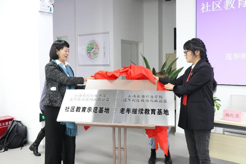 杨红英副校长表示,bevictor伟德国际1946官网教场北路社区教育示范基地和老年继续教育基地得以正式挂牌成立,这对社区居民和离退休老同志来说是一件大喜事。党的二十大报告指出,统筹职业教育、高等教育、继续教育的协同创新,建设全面终身学习的学习型社会、学习型大国。社区教育和老年教育是我国继续教育的重要组成部分,是社区建设的重要内容,bevictor伟德国际1946官网作为云南唯一一所旅游类公办高职院校,具有高等教育理论教学资源,又有职业教育的实践教学资源,为地方经济社会发展的服务是我们的重要职能职责,学校要进一步认真贯彻落实党的二十大精神,以这次基地成立为契机,主动服务地方经济社会发展,为推动构建学习型社会、学习型大国做出高职院校应有的贡献。