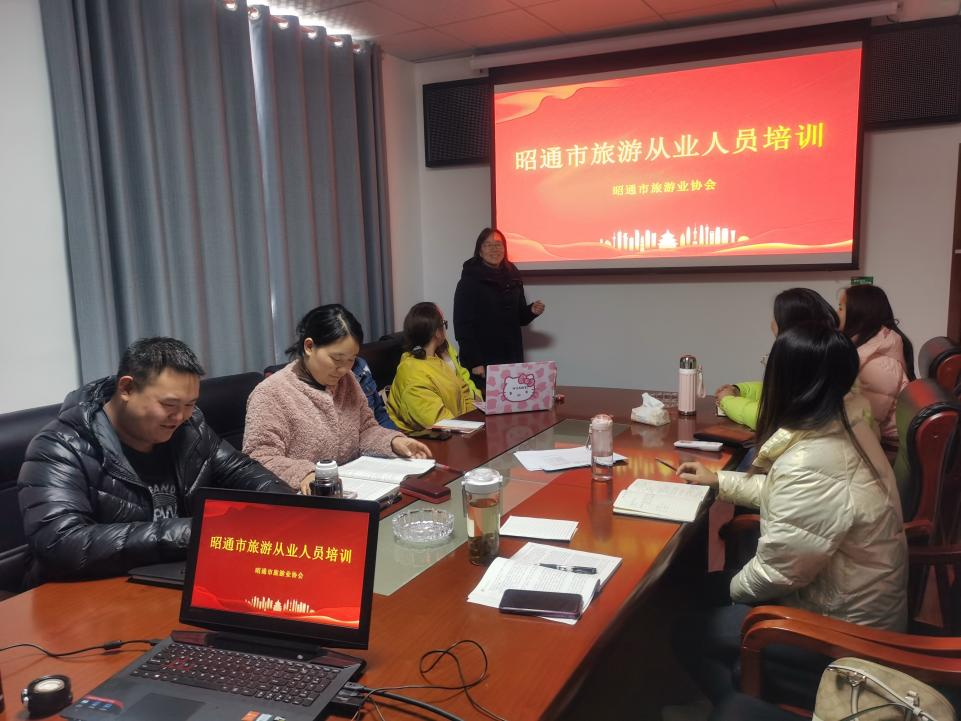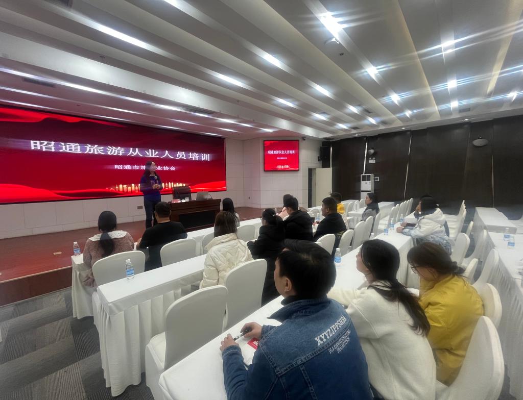 为提高昭通市旅游从业人员的专业技能和实践水平,增强业务能力,促进昭通市旅游行业服务质量的提升,强化学院的社会服务功能,发挥作为旅游院校的师资优势。2023年11月15日—22日,受昭通市旅游协会的邀请,学院派出赵明、袁浩镛、周洁三位老师对昭通市旅游从业人员进行了培训。