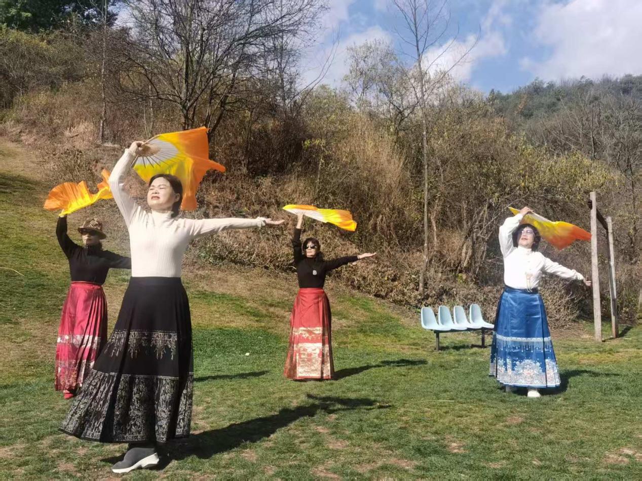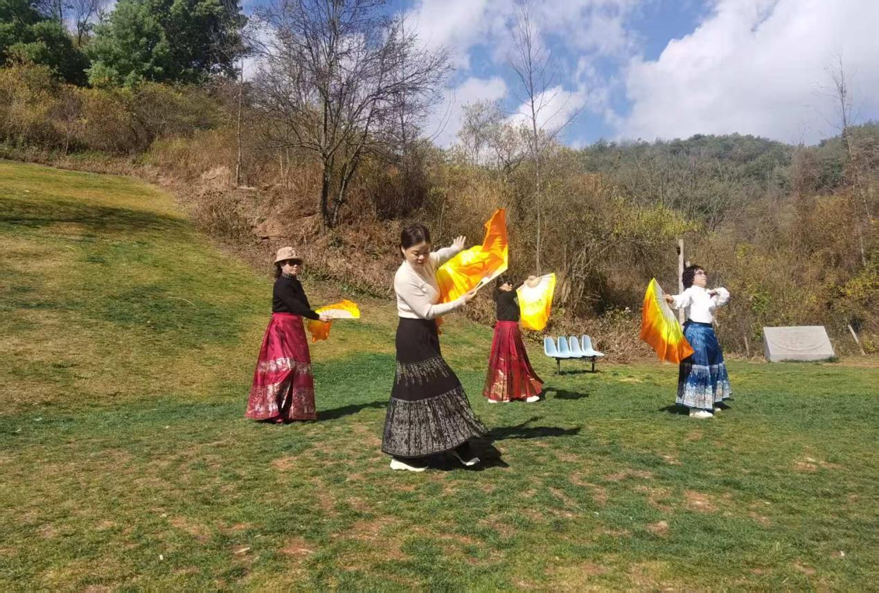 近日,继续教育学院精心策划组织一场老年继续教育活动,带领社区20余位老年人前往盘龙区水源谷农家乐,开展民族舞表演教学暨春游活动。本次活动不仅丰富了老年人的精神文化生活,还为他们提供了亲近自然、交流互动的平台。