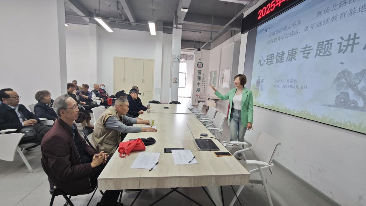 2025年4月是第37个爱国卫生月,今年的主题是“爱卫新篇章健康‘心’生活”。为深化社区心理健康教育,4月10日下午,继续教育学院特邀昆明市培训师协会心理健康专业委员会副主任、国家二级心理咨询师、云南省五华监狱/警察心理健康服务中心心理咨询师杨晶然,走进教场北路社区,为社区30多位居民带来一堂主题为“积极心理学、守护‘心’健康”的心理健康讲座,助力社区居民以积极心态拥抱美好生活。
