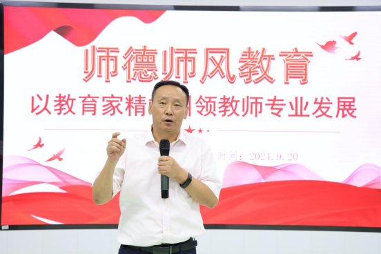 王霞副院长在结业典礼上做总结发言,她用“双向奔赴”和“全力融入”两个词表达了对新入职教师的欢迎和期望,以“紧、实、高、严、强”五字概括了本次培训特点,并希望全体教师团结一心、勉力躬行,共同为学校发展贡献力量、成就梦想。