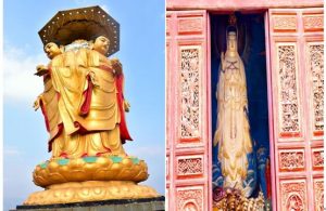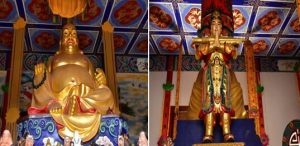 有殿就有佛,大雄宝殿三身佛、观音菩萨;天王殿四天王