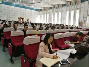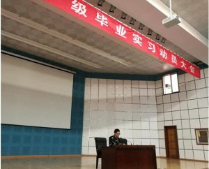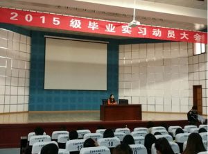 首先由赵明院长进行顶岗实习动员讲话,她说:转眼间你们就要去实习了。回首两年多的学校学习,可能有些同学在心中都会有一种怅然若失的感觉。感觉自己努力得还不够、对专业、职业、行业以及社会的认识还不够深,前方的路也不知道该怎么走等等。成长的路上难免会有些问题,但是要有一颗积极向上的心。实习是每个人职业生涯的必经之路,而且也是影响大家上岗就业的至关重要的一步。所以在座的每一位同学要认真对待。把实习视为社会实践的良机,视为人生旅途的一次磨砺,视为通向上岗就业路途的桥梁。在实习过程中,同学们要本着学习的态度,用眼去观察、用心去体会。随后,院长又从学生的人身安全,财产安全上细心叮嘱,希望同学们要牢固树立“安全第一”的思想,切实提高安全防范意识。相信半年后大家能圆满完成实习任务,安全返校、顺利毕业。赵明老师也对学生实习中职业道德和职业素养提出了几点要求,要求学生们爱岗敬业、精钻技能、虚心好学、团结互助。