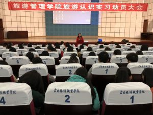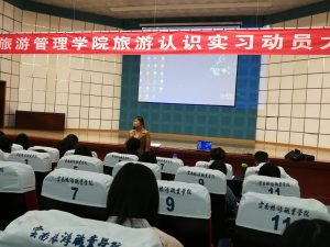 为2017级学生旅游认识实习顺利进行,让学生明确实习的目的、意义,引导学生做好实习工作,2017年12月4日,旅游管理学院在报告厅召开了2017级旅游认识实习动员大会。院长赵明、党总支书记袁浩镛、副院长周洁、各班班主任、实习指导教师以及2017级全体同学参加此次会议。旅游管理教研室主任雷蕾主持此次大会。
