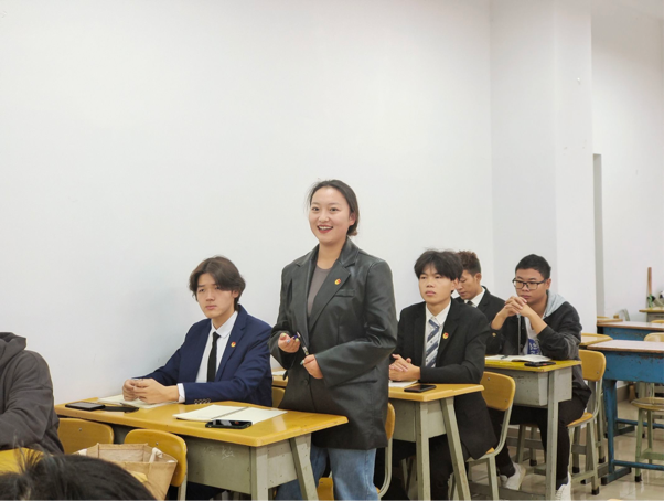 在政治理论学习环节,王敏老师带领全体同学主要围绕深入学习党的二十大报告,把握全面建成社会主义现代化强国总的战略安排,牢牢把握“坚持和加强党的全面领导”“坚持中国特色社会主义道路”“坚持以人民为中心的发展思想”“坚持深化改革开放”“坚持发扬斗争精神”的重大原则,埋头苦干、担当作为,学习政治理论思想,争做立志做有理想、敢担当、能吃苦、肯奋斗的团学干部。在工作和学习中,要充分发挥学生会、团总支两支学生队伍的先锋模范作用,践行全心全意为广大同学服务的宗旨,在实践中担当使命、有所作为。当代青年要把学习宣传贯彻党的二十大精神融入到团学工作的方方面面,转化为各项工作的具体实践。