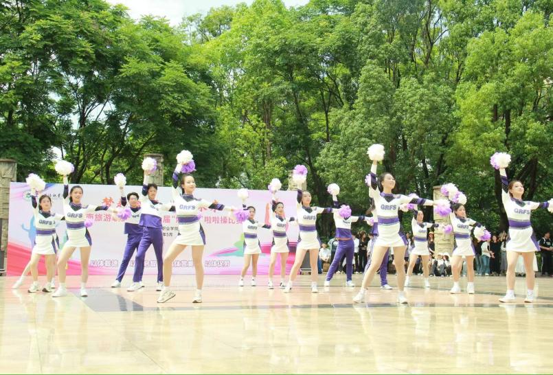 决赛当天,队员们身着白紫色战服,以融合爵士与花球元素的《Harry go》和《DADDY》惊艳全场。高难度托举动作干净利落,队形变换流畅精准,青春洋溢的笑容感染了每一位评委与观众。最终,队伍以极少的分差位列第四。虽与奖牌失之交臂,但队员们专业的表现赢得了对手的掌声,更赢得了学院师生的呐喊与关注。