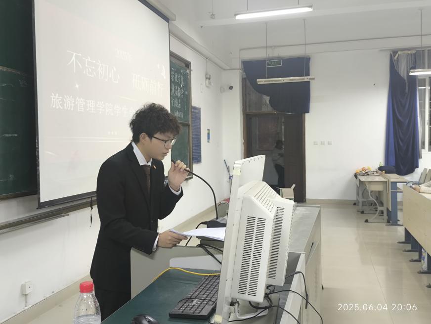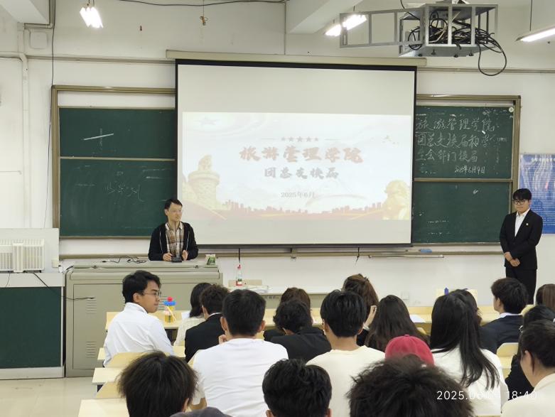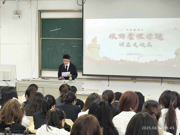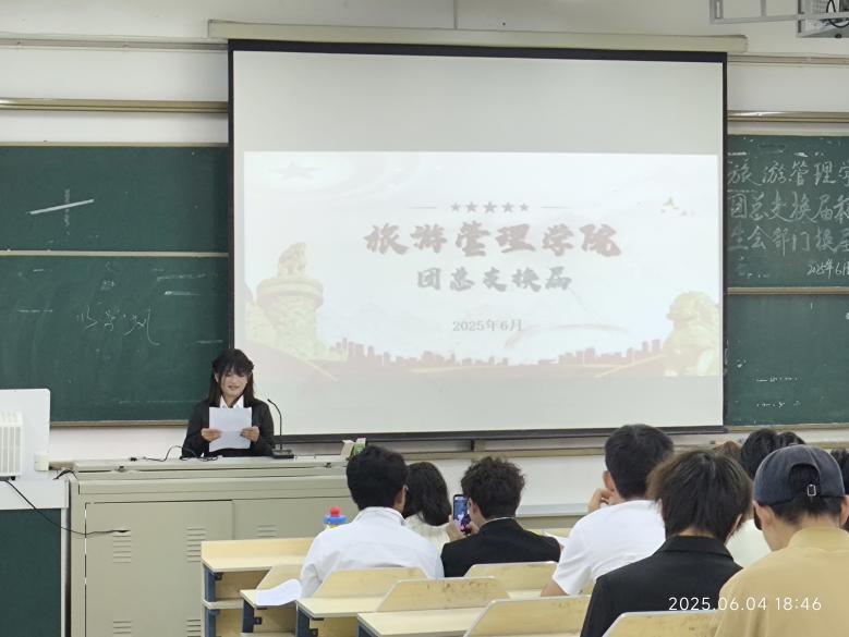 2025年6月4日,旅游管理学院团总支换届大会在高新校区301教室举行。旅游管理学院党支部书记伍乐平、副书记聂晓茜、辅导员曾君瑶、各班班长、全体学生会成员及候选人出席本次会议。大会通过总结过往、竞选换届,为学院共青团工作注入了新活力。