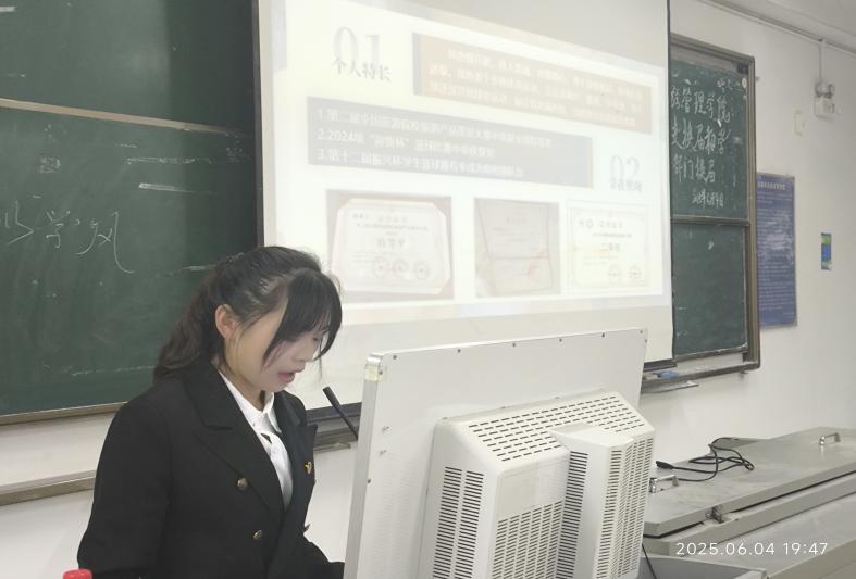 述职环节,23届各部门负责人依次汇报工作,全面展现了往届团队的责任担当与工作亮点,为新一届团总支提供了实践范本。述职结束后,24 届部长竞选者结合个人优势与岗位认知,提出务实规划,彰显出对共青团工作的深刻理解与积极愿景。
