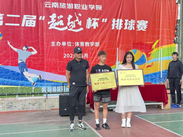 此次比赛中,导游 2301 班林杰和旅游管理 2303 班李柳镜凭借在赛场上的稳定发挥和出色表现,荣获“优秀运动员”称号。旅游管理学院全体队员在赛场上展现出的团结协作、尊重对手、遵守规则的精神风貌,也为学院赢得了体育道德风尚奖。