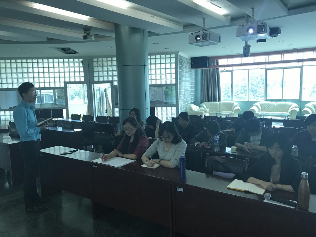 2018年4月23日中午13点,旅游管理学院全体党员在图书馆模拟导游厅召开党支部大会。会议由袁浩镛书记主持。