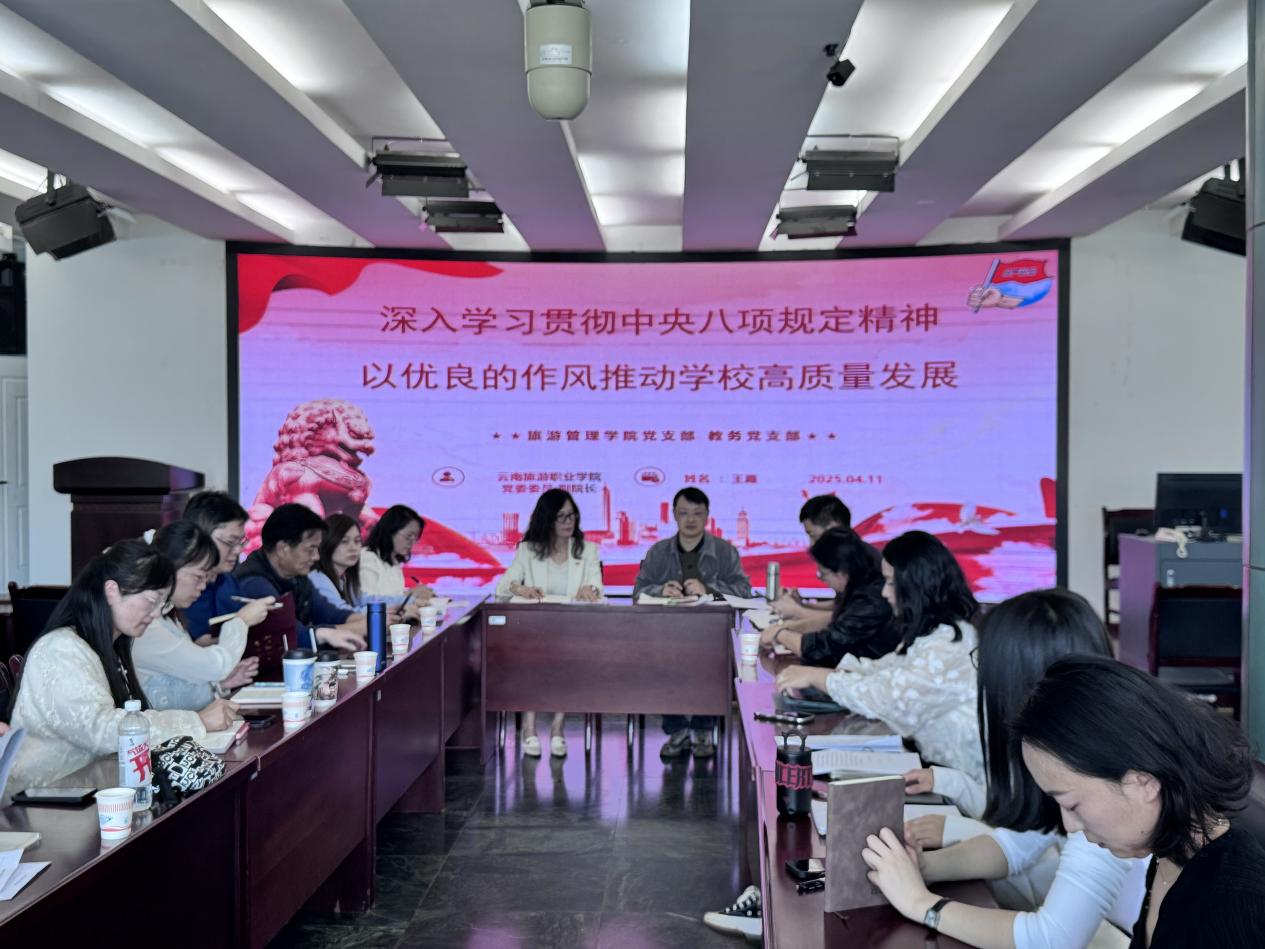 2025年4月11日,bevictor伟德国际1946官网党委委员、副院长王霞以“深入学习贯彻中央八项规定精神,以优良的作风推动学校高质量发展”为题,为旅游管理学院党支部、教务党支部讲授专题党课,围绕中央八项规定精神的核心要求、学习教育部署及作风建设实践展开深入解读。