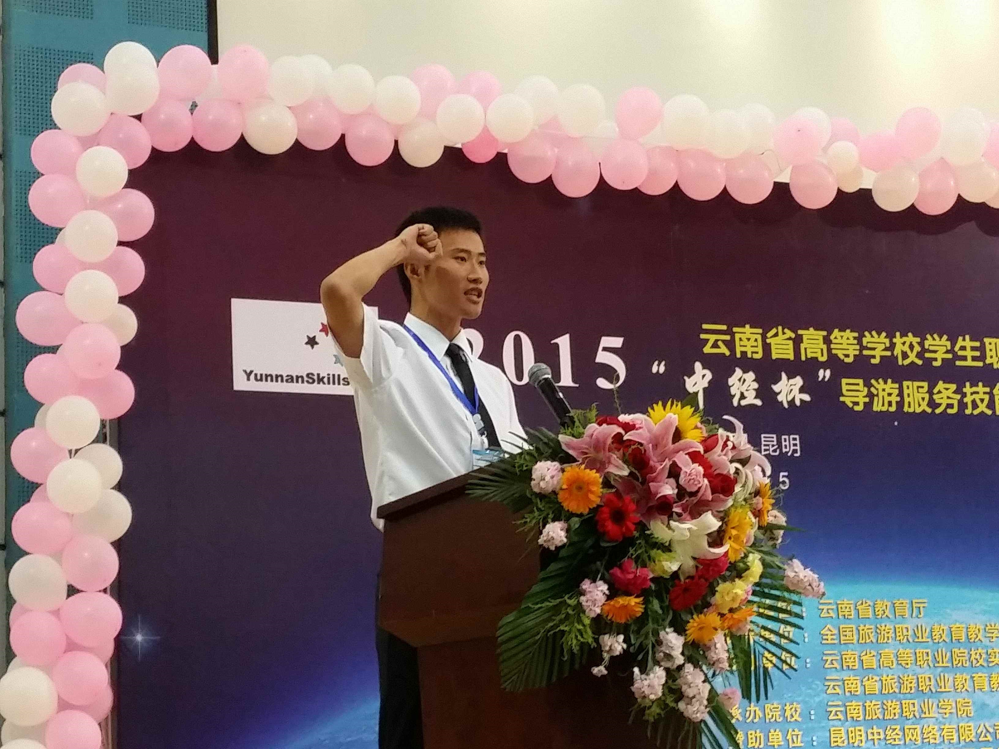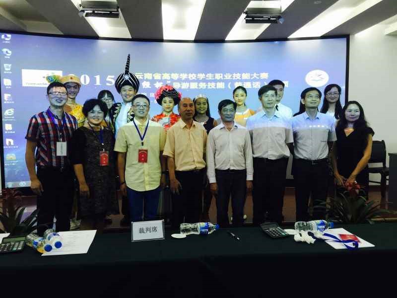 2015年云南省高等学校导游服务技能赛项比赛与5月9日在bevictor伟德国际1946官网隆重举行。在省教育厅、省旅发委的领导的关心下,在有关单位和各参赛代表队的支持配合下,大赛取得圆满成功。这次比赛分为导游基础知识理论笔试、导游才艺展示、景点讲解和现场知识问答四个项目。全省有22个学校42名学生、 61名领队及指导老师参加比赛。经过激烈角逐,共有16名学生获奖,其中一等奖4名,二等奖6名,三等奖6名。