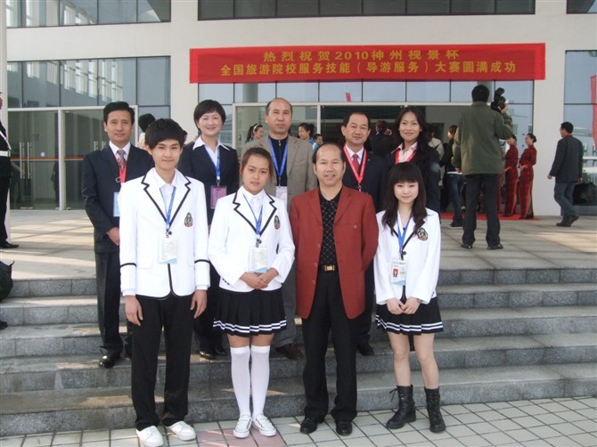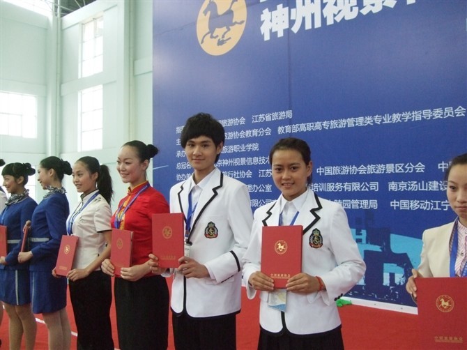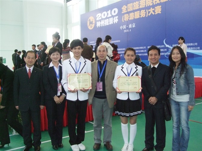 2010“神州视景杯”全国旅游院校服务技能(导游服务)大赛于4月23日——25日在江苏南京举行。这是一届由中国旅游协会旅游教育分会和教育部高职高专旅游管理类教学指导委员会主办、南京旅游职业学院承办的全国性比赛。大赛以“展风采,重交流,促就业”为目的,分别按高等院校和中等职业学校两个大类举行,每所学校限报两名正式参赛选手。比赛由理论考核、景点讲解、才艺展示三个部分组成,其中理论考核30分,景点讲解50分,才艺展示20分,满分100分。大赛组委会事先公布了北京故宫、南京中山陵、苏州拙政园、安徽黄山以及云南石林等全国著名的20个5A级景点,选手从中自选一个景点在5分钟之内完成讲解,要求在比赛前十分钟经抽签决定对“商务考察团”“亲子度假团”“中老年观光团”“中学生修学团”四种不同类型的团队的某一种团队进行针对性讲解;才艺展示也结合导游职业特点,选择舞蹈、唱歌、朗诵、魔术的表演形式,充分展示学生的艺术特长。