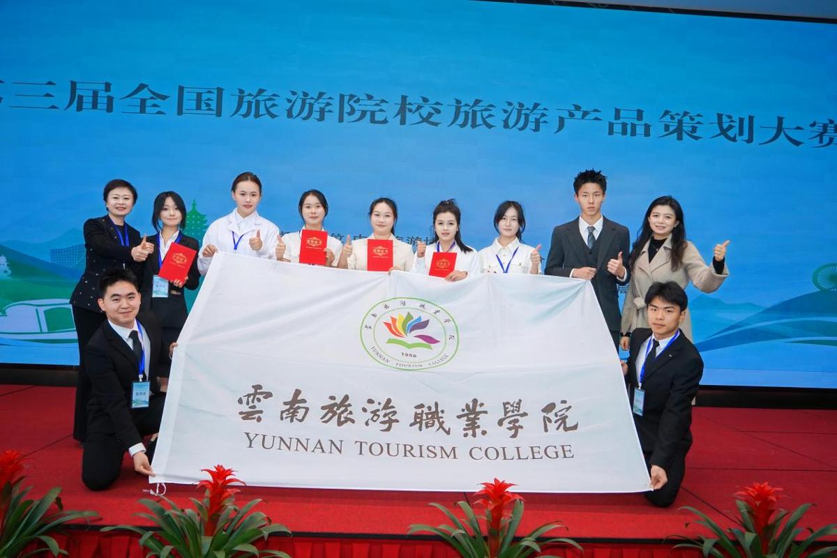 近日,由中国旅游协会指导,中国旅游协会旅游教育分会、浙江旅游职业学院共同主办,舟山市普陀区文化和广电旅游体育局、杭州领云软件有限公司协办的第三届全国旅游院校旅游产品策划大赛在浙江舟山普陀区落下帷幕。伟德旅游管理学院选派的五支高职组学生团队成功入围决赛,团队成员凭借专业群坚实的教学积淀、扎实的专业技能、创新的策划理念及出色的现场展示,从全国各地参赛队伍中脱颖而出,最终斩获高校组特等奖1项、一等奖2项、二等奖2项的优异成绩,充分展现了云旅学子的卓越风采,也彰显了学校旅游管理省级“双高”专业群的建设成效与育人实力。