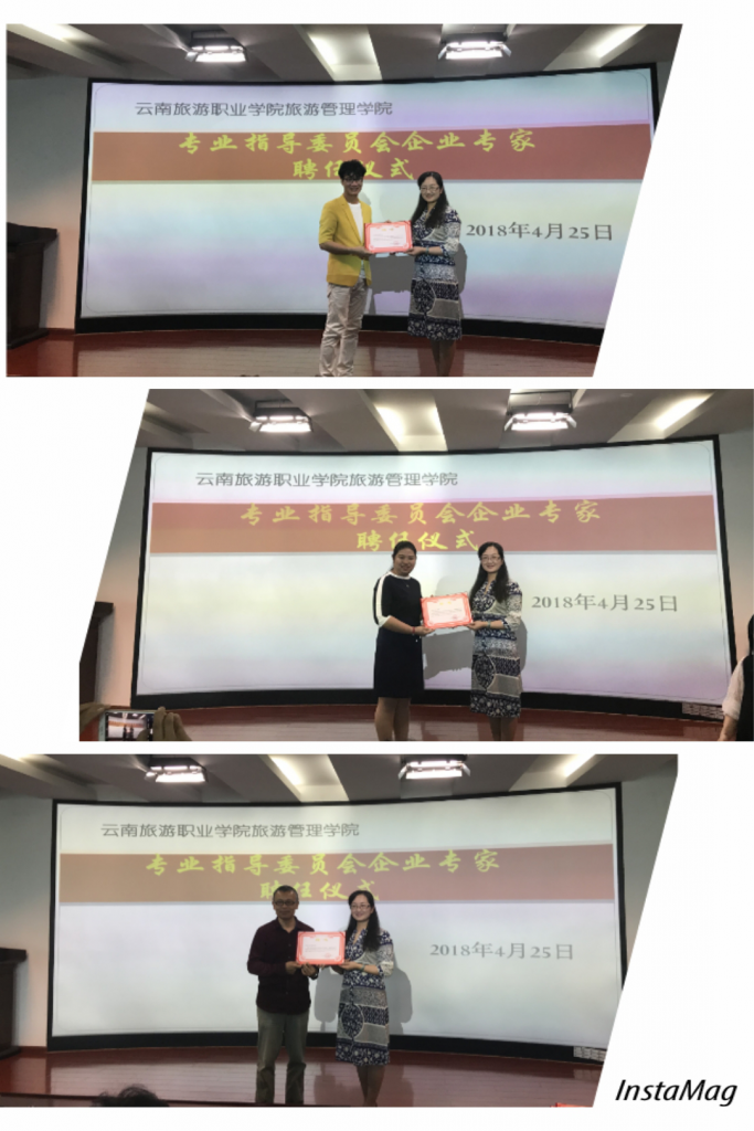旅游管理学院专业指导委员会在之前已聘请的13个企业专家基础上,2018年新增聘王明忠、葛瑞、赵永华、段超、马秦俊杰等14位企业专家和1位教学研究的客座教授——马云鹏老师。本次会议第一个议程是对今年新增聘的企业专家和客座教授颁发聘书。之后专业委员会成员们开展了热烈的研讨。各位专家结合行业发展态势与自身丰富的行业经验为伟德如何开展优质专业建设、如何提升专业质量提出了精准的建议,为伟德发展积极的建言献策,还提出了旅游管理专业应加强特色化建设等意见。研讨后,专家们还为伟德即将参加全国旅游院校导游技能大赛的选手们进行了指导。