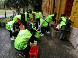 志愿者积极主动的清扫讲武堂历史博物馆环境卫生
