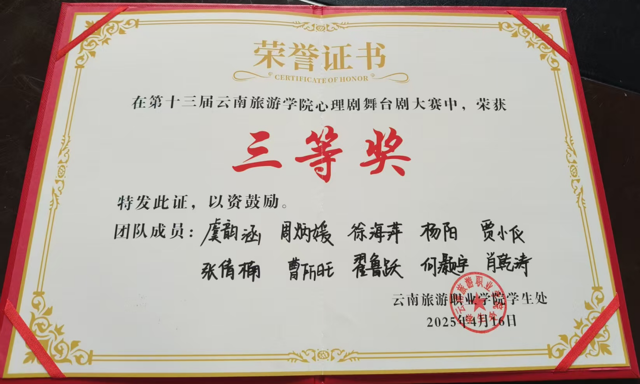 此次获奖,不仅是对《镜花水月》剧组全体成员的肯定,更是对旅游管理学院在心理健康教育与艺术实践融合发展方面的认可。一直以来,学院十分注重学生的全面发展,积极通过各类活动培养学生的综合素质与心理健康意识。