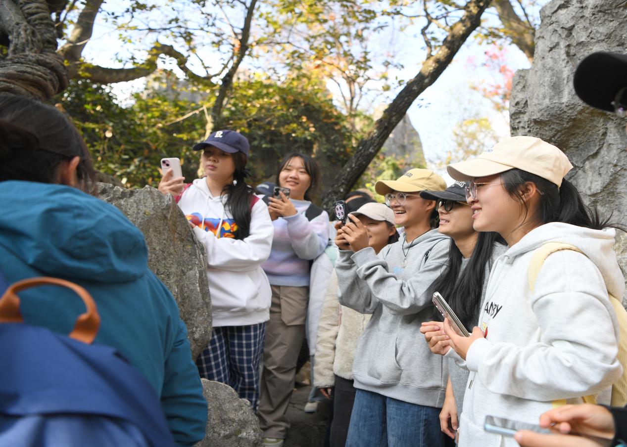 石林风景区位于云南省昆明市石林彝族自治县,其典型且古老的喀斯特地貌闻名遐迩。这里石峰如林,石柱参天,独特的地质景观在漫长岁月中沉淀,宛如一部鲜活的“地质史书”,更是旅游资源开发与研究领域的典范。实习期间,同学们在老师的带领下,深入探究石林的形成历史、地质特征及文化内涵。他们认真记录、仔细观察,小组讨论围绕石林旅游资源开发与可持续发展热烈开展讨论,各抒己见。