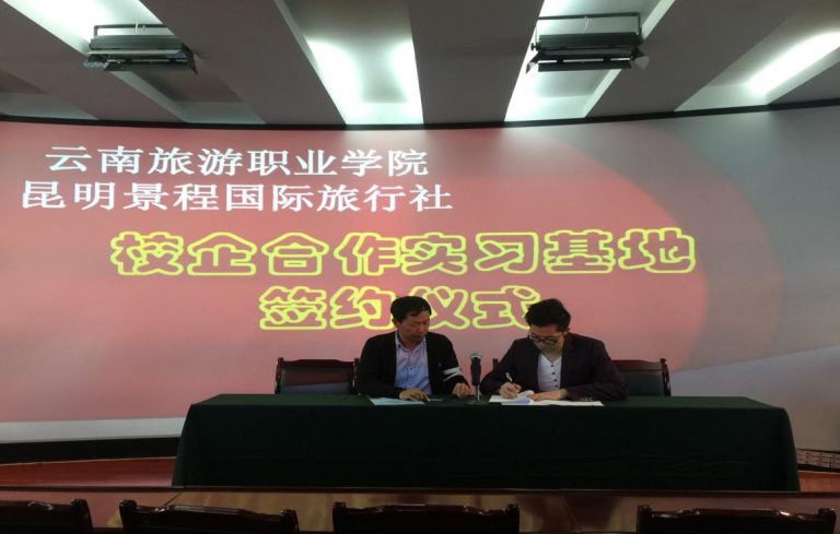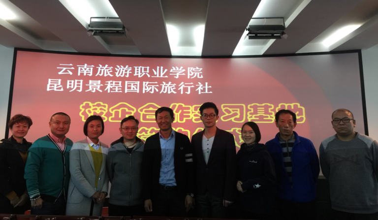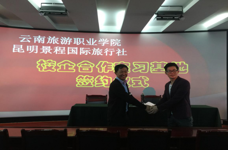 10月31日下午,旅游管理学院与昆明景程国际旅行社代表在学院模拟导游厅共同举行了校企合作实习基地签约仪式。景程国际旅行社杨韬经理和相关部门的领导一行6人、学院党总支袁浩镛书记、王晓璇副书记及有关老师参加了此次活动。签约仪式由袁浩镛书记主持。