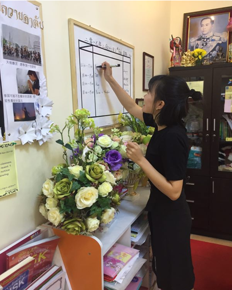 导游1401班赵雯卓,现就职于是在泰国春武里府芭提雅市,CLH语言培训中心,我的主要工作是前台的接待;