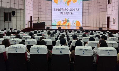 为促进旅游管理学院2024年岗位实习工作的顺利开展,深化产教融,与企业对接到校进行“人才储备班”宣讲活动。4月1日下午,旅游管理学院2024年度实习动员大会在报告厅展开。旅游管理学院领导、辅导员、班主任以及2022级全体学生参加动员会。