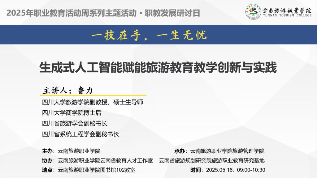 为提升专业教师教学科研能力,旅游管理学院于2025年5月16日举办2025年职业教育活动周职教发展研讨日“人工智能赋能旅游教育”主题活动。
