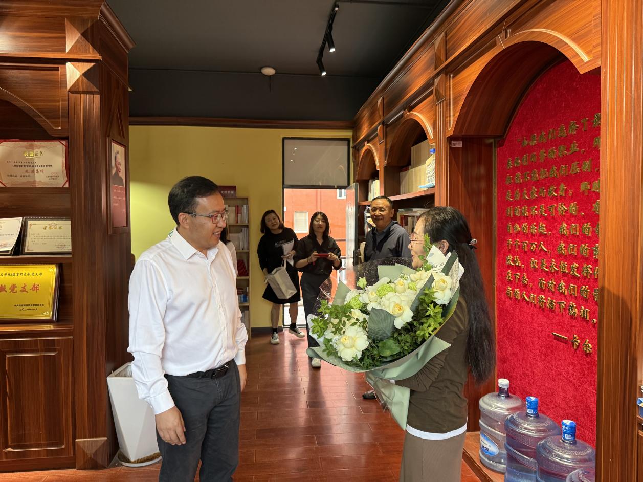 9月9日上午,在第41个教师节来临之际,学校党委书记王翔、党委副书记王敏率领相关职能部门负责人一行专程来到马克思主义学院,亲切走访慰问思政课教师代表,并向学院全体思政课教师致以诚挚的节日祝福。