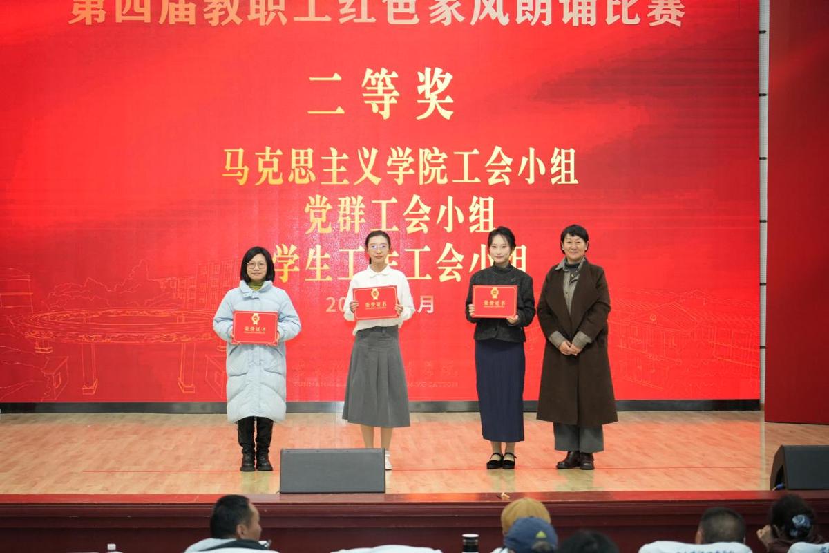 11月19日下午,bevictor伟德国际1946官网第四届教职工红色家风朗诵比赛圆满落幕。马克思主义学院工会小组凭借作品《五封家书—读懂共产党人的初心》,以深情的朗诵和深刻的思想内涵荣获二等奖,展现了思政教育工作者的使命担当。
