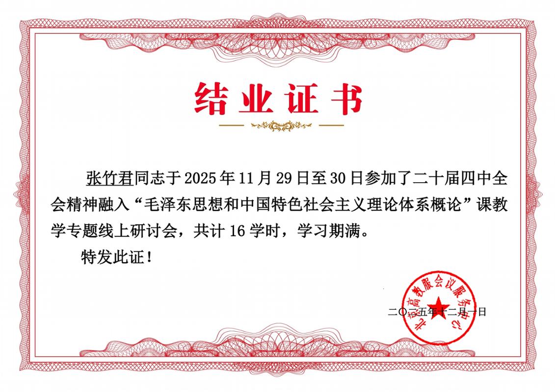 参会教师一致表示,本次研讨会内容丰富、指导性强,既深化了对党的二十届四中全会精神的理解把握,又明晰了其与教学融合的切入点和方法路径,为今后提升课堂教学质量、增强思政教育实效性提供了宝贵经验。