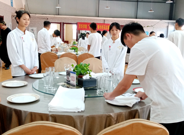 为大力弘扬和培育工匠精神,激发同学们的学习热情,积极推进技能人才培养工作,营造良好的技能育人氛围,提升同学们的专业素质,2023年5月20日至21日,烹饪学院分别在龙泉校区食堂三楼和津桥校区423教室举行了“妙手杯”餐巾折花比赛。