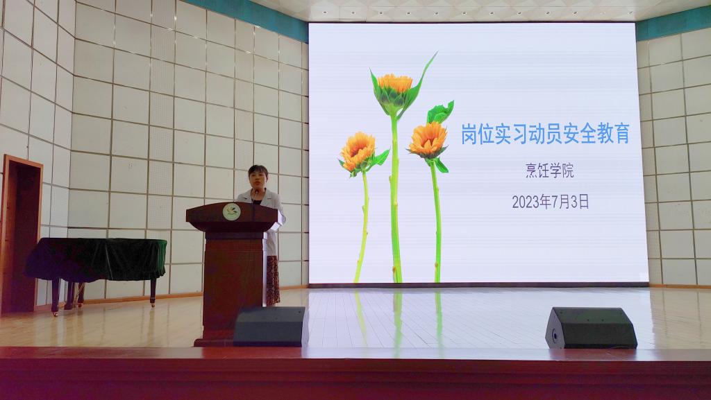 会上,韩昕葵院长首先向同学们阐述了实习的教学安排。她强调烹饪学院的所有专业是现代学徒制专业,根据人才培养方案,2024届毕业生的实习分为校企一体化教学和岗位实习两部分,并分别就每个阶段需完成的教学任务、时间安排、实习内容、实习要求和注意事项进行了详细说明,重点对实习安全、实习纪律提出了具体要求。