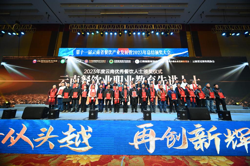 12月22日,在云南省商务厅的支持和世界中餐业联合会、中国烹饪协会、中国饭店协会的指导下,第十一届云南省餐饮产业发展大会在昆明云安会都隆重召开,会上同步举行了2023年云南餐饮行业总结颁奖活动,伟德教师韩昕葵、杜朝旺、杨俊峰、张文林、张云岗被评为“职业教育先进人士”,韩昕葵院长作为代表上台领奖。