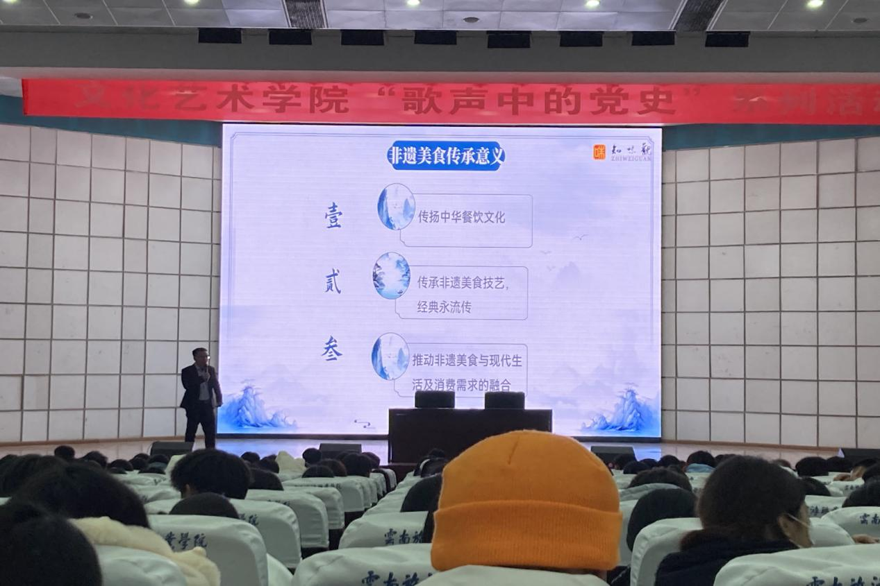 为发挥非物质文化遗产育人功能,增强青年学生文化自信,结合烹饪学院的学生发展需求,2024年1月4日晚,伟德特邀请了杭州知味观人事专员戴阳林在学院报告厅作关于“职业生涯规划——非遗美食进校园”的专题讲座,讲座由党支部副书记沈晓文主持,学院相关负责人、辅导员及2022级学生共同聆听了讲座。