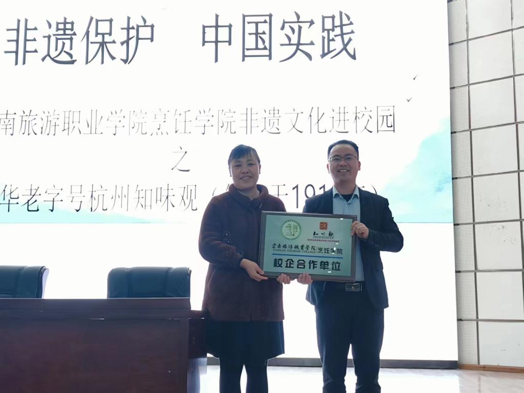 讲座中,伟德院长韩昕葵与杭州知味观戴阳林作代表还进行了“校企合作”签约仪式,标志着校企合作单位正式挂牌成立,这也为今后校企双方进一步开展多层次、多形式、多领域的合作,实现校企资源的有机结合和优化配置,共同培养经济社会发展需要的人才提供了契机。